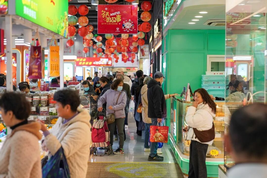 随着春节脚步日益临近,申城年味愈发浓厚,徐家汇商圈迎来年度消费旺季。有着“沪上食品大王”美誉的汇联商厦,凭借丰富的年货品类与浓厚的节日氛围,成为市民选购新春食材的首选之地,店内人头攒动,处处洋溢着喜迎新春的热闹景象。