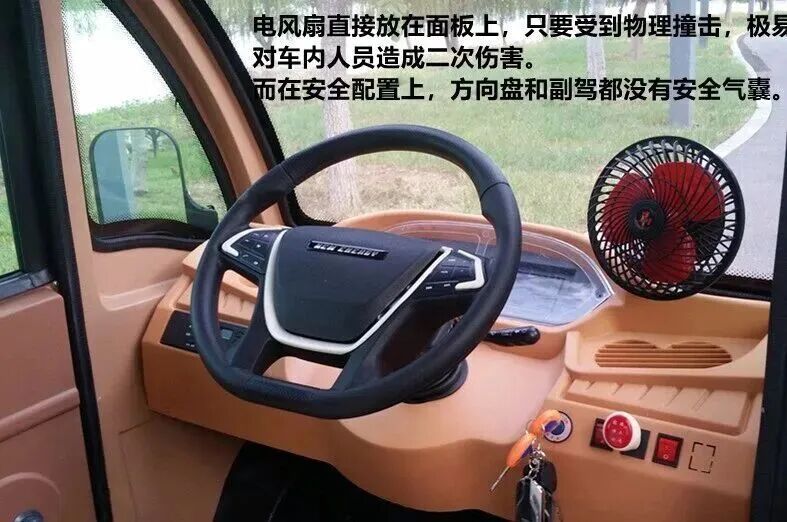 ■ 车身防护性能较弱,没有安全带、安全气囊等,安全配置不足,受到撞击时驾乘人员易被甩出车外,可能会出现车毁人亡的恶性事故。