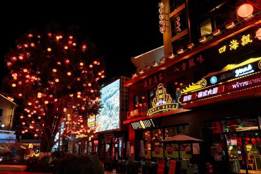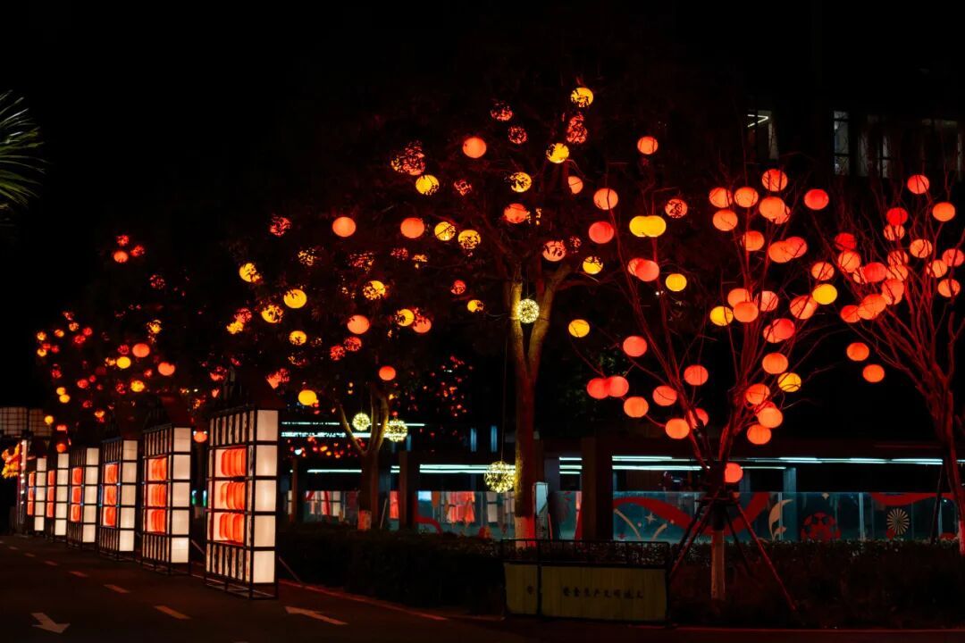 还没走进爱企谷年俗市集,路边几棵挂满红黄灯笼的树就先入了眼,枝桠间的灯笼簇成一团团暖意,直接拉满“红红火火迎马年”的新年氛围。