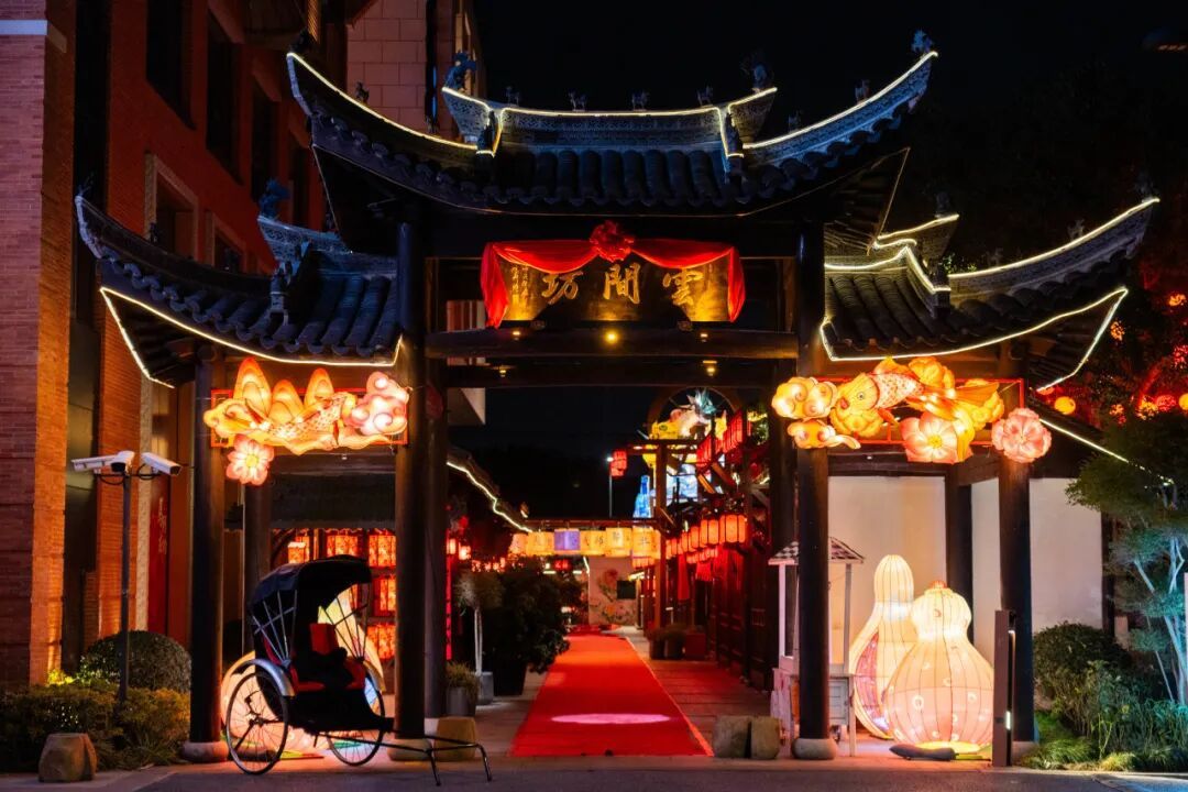 作为本次灯会核心区域的云间坊老街,更是藏着独一份的浪漫。明黄、淡紫的百家姓方灯错落垂挂,暖光温柔晕染着百家姓汉字,和缀满非遗纹样的宫灯相映交织,汇成一幅璀璨灵动的流光长卷。抬头找找属于自己的姓氏,在暖黄光晕里,与千年文脉温柔相遇。