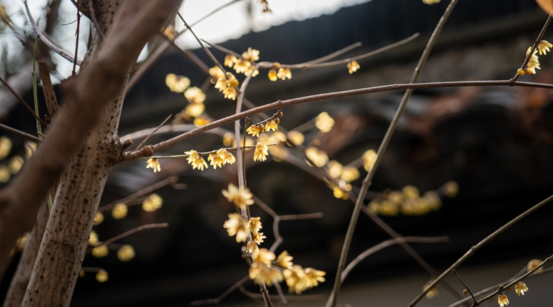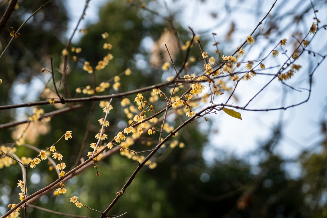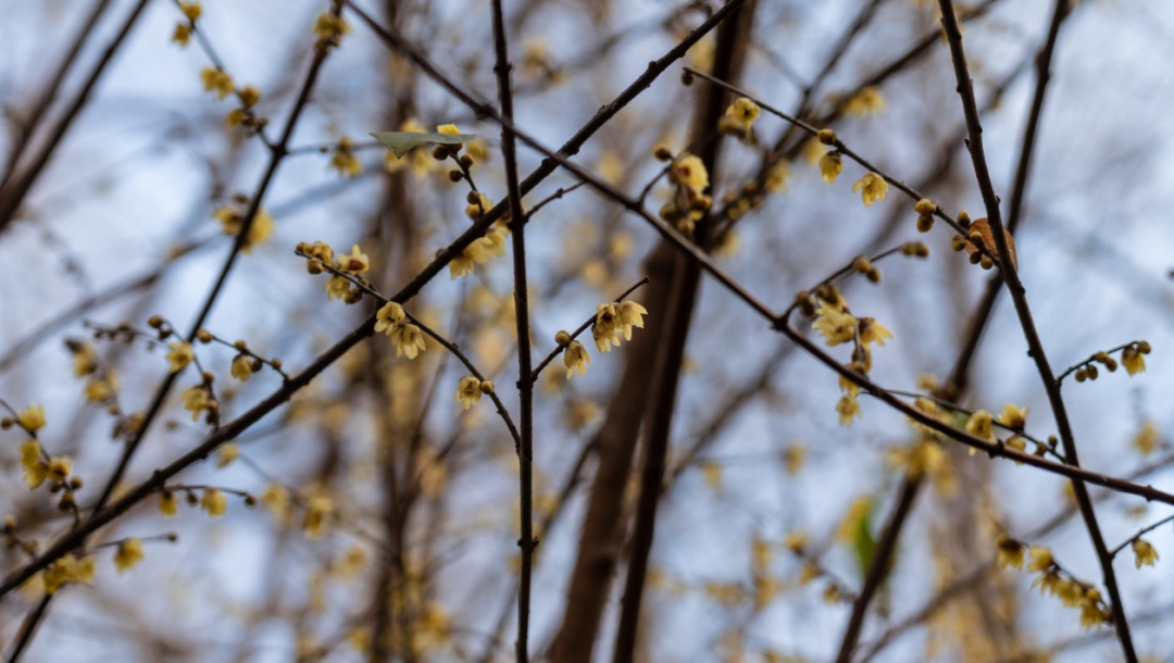 受暖冬天气影响,今年瀛洲公园的蜡梅开花时间延迟,目前正值最佳观赏期。
