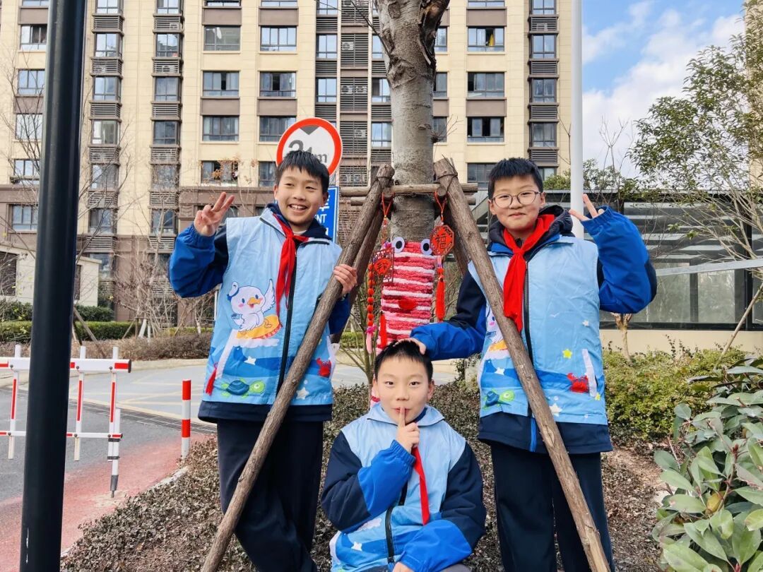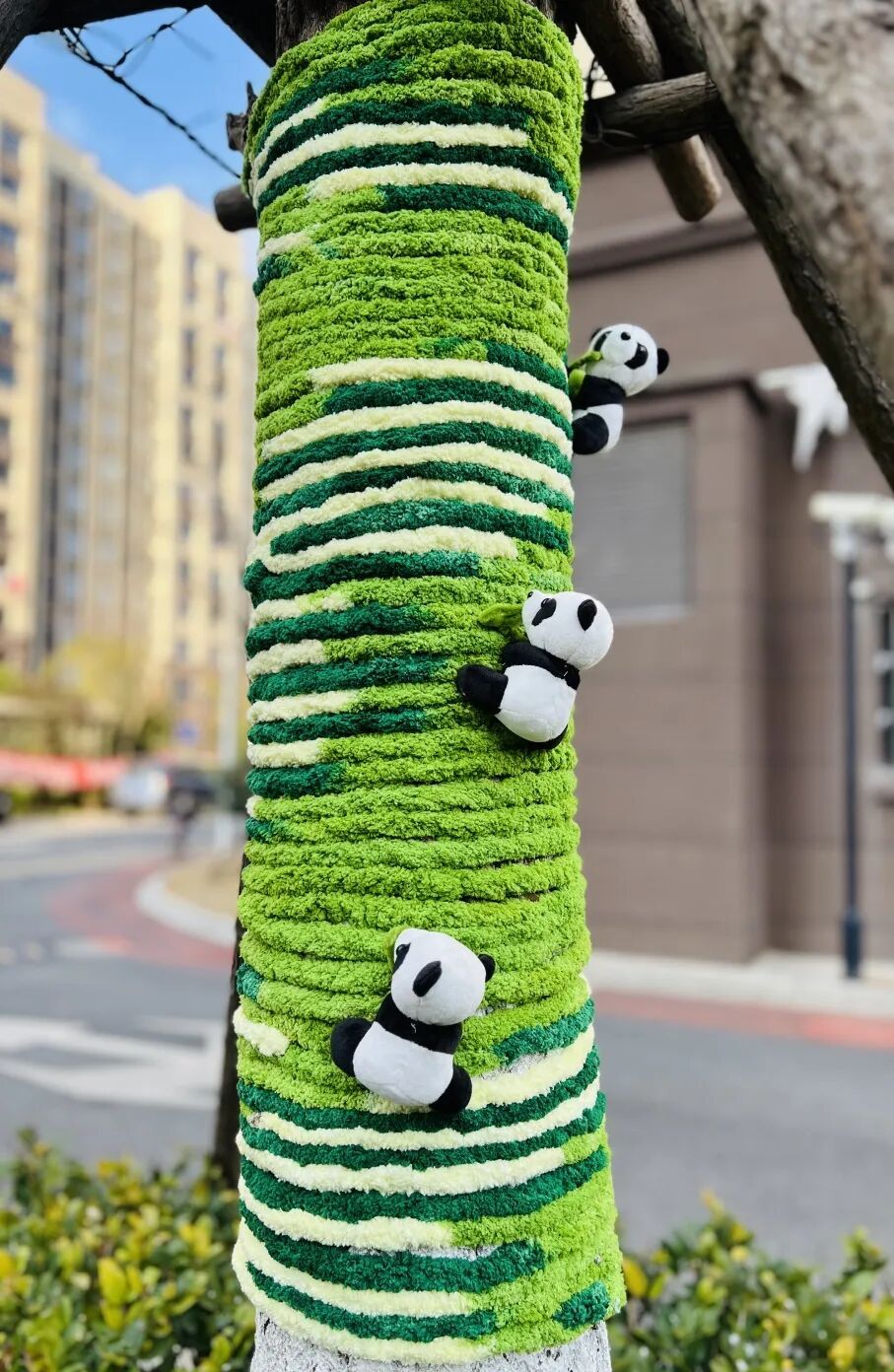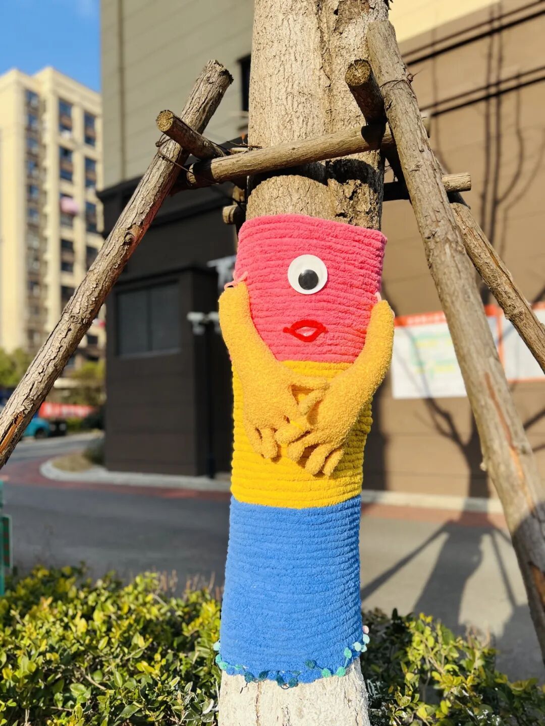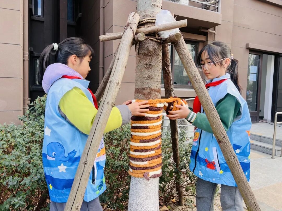 最期待的包树创作环节来了!小守护者们带着准备好的专属包树毛线和DIY的装饰品,在社区林荫道上分工协作:有的为树木缠绕毛线,有的用装饰材料点缀枝丫,共同为每一棵树穿上“保暖衣”。原本略显萧瑟的冬日树木,在大家的共同创意装扮下,瞬间变得温馨又灵动,成为社区里一道独特的新春风景线。