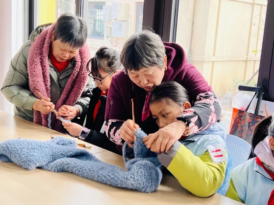 社区志愿者老师们耐心分享编织经验,小守护者们相互配合、互帮互助。虽然过程中不乏生疏与挑战,但邻里间的温情流转其间。在动手实践中,大家不仅体验了传统针织的乐趣,更拉近了社区邻里间的距离,深化了互助友爱的情谊。