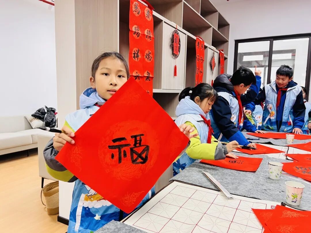 兰新社区的活动室内墨香四溢。小守护者们聚焦“新年祝福”“社区美好愿景”主题,手握毛笔认真创作:有的一笔一划书写新春对联,有的精心勾勒“福”字福块,稚嫩却坚定的笔触中,藏着对新年的期盼、对社区的热爱。一幅幅作品新鲜出炉,不仅展现了中华传统书法的魅力,更将不同群体的童真祝福与互助温情定格在笔墨之间。