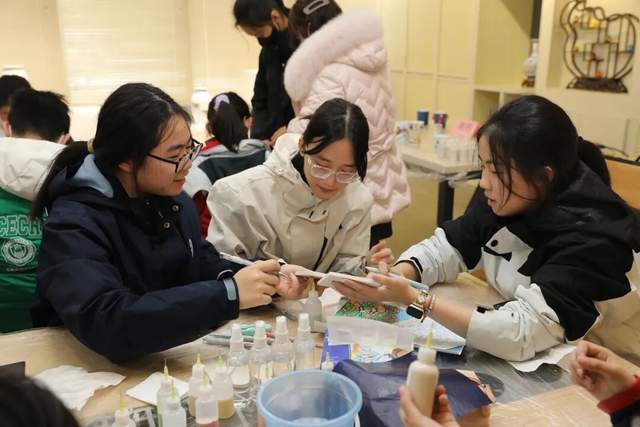 拉胚体验区则是充满欢声笑语,学生们双手覆在湿润的陶泥上,随着拉胚机的转动轻轻施力,原本不起眼的泥土在指尖逐渐塑形。有的学生手法娴熟,很快拉出圆润的碗坯,边缘还特意做了波浪纹装饰;有的大胆尝试个性造型,歪脖瓶的瓶身略带倾斜,却透着独特的艺术感,成为现场“网红作品”;还有的专注制作盘子,精心调整盘沿弧度,计划后续再进行釉下彩装饰。“我第一次做拉胚,没想到这么有意思!”有“天赋选手”兴奋地展示自己的四件作品,从碗到小型摆件,件件造型完整。