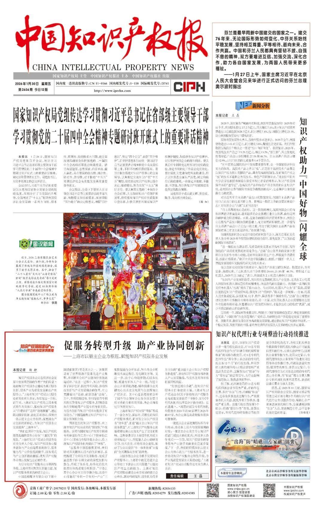 知识产权服务业应在经济社会发展中发挥着怎样的作用?“我们希望上海的知识产权服务业能成为真正服务创新、服务产业高质量发展的生产性服务业。”上海市知识产权局公共服务处有关负责人表示,为实现这一目标,近年来,上海市知识产权局以服务模式转型为突破口,推动知识产权服务从“后端保护”迈向“前端赋能”,通过联动国家资源、强化区域协同,探索出一条以链主企业为枢纽、深度融合产业创新的新路径,为知识产权服务业发展提供“上海样本”。 “我们在调研中发现,知识产权代理类基础性服务业存在‘三重脱节’的现象。”上海市知识产权局公共服务处有关负责人介绍,知识产权服务业服务链条与产业前端需求的错位、服务能力与产业价值链的脱节、服务模式与产业创新链的割裂,使知识产权服务业难以发挥出应有的作用。 为引导知识产权服务业尽快转型升级,上海将目光聚焦创新能力强、知识产权服务需求高的链主企业。 中国船舶集团有限公司(下称中国船舶集团)便是其中之一。该集团培育了世界级海洋装备先进产业集群,并不断向全球产业链和价值链高端延伸。“在这一过程中,知识产权发挥了保护创新、防控专利风险、推动科技创新与产业发展融合的作用,有力支撑着国产船舶、配套设备‘出海’。其中,专利挖掘培育、专利导航与专利风险预警等知识产权服务,特别是诸如大型邮轮等产业链专利导航支持,为技术创新与知识产权布局提供了有效助力。”中国船舶集团知识产权中心副主任何新介绍。 何新提到的知识产权服务,由上海市知识产权局请来的“国家队”外援提供。该局与国家知识产权局专利局专利审查协作江苏中心(下称审协江苏中心)紧密合作服务链主企业,给上海知识产权服务机构提供了“样板”。 “在服务中国船舶集团时,我们针对其关键核心技术的创新需求,系统梳理了全球技术发展脉络,完成了涵盖数千件专利文献的深度挖掘与整合,形成了体系化、标准化的技术数据包和高质量分析报告。”审协江苏中心办公室主任李捷介绍,这是中心打造的“专利—非专利—产业”三维数据融合分析体系,旨在为企业明晰技术演进路径、优化研发方向。更进一步,该中心构建伴随式服务机制,派遣专班深入产业一线,与链主企业开展多轮沟通,精准摸排企业关键核心技术攻关瓶颈与全流程知识产权诉求。该中心还系统检索分析了国外行业领军企业在全球主要目标市场的专利布局网络,为企业精准定位创新突破口。 上海市知识产权局借“外脑”形成了一套全方位、深层次、前瞻性的知识产权服务模式,同时设立知识产权服务“快车道”、组建“链主企业知识产权服务联盟”,对上海知识产权服务业的提质增效和业态优化产生了显著的影响。这些举措引导上海服务机构更主动地贴近产业,深度融入企业的研发立项、技术攻关、市场布局全流程,推动了行业从提供“单一事务处理”向提供“全周期解决方案”的转变。 以服务链主企业为抓手发展知识产权服务业,上海看中的更是链主企业带动上下游企业共同搭建产业链知识产权生态的能力。上海市知识产权局推动建设由垂直领域的链主企业牵头,联动科研院所、服务机构等多方主体的“重点链主企业知识产权服务推进组”,推动知识产权服务精准嵌入产业发展脉络,与技术攻关和市场拓展同频共振。 “打铁还需自身硬”,在知识产权服务业自身建设方面,上海市知识产权局出台《关于推动知识产权服务业高质量发展的若干举措》、发布《专利代理机构信用综合评价指南》。在此基础上,上海获评诚信专利代理机构数量由2024年的60家增至2025年的87家,为企业筛选高质量服务提供可靠保障。 一批链主企业系统规划标准与专利布局,推动本土技术与国际规则的对接;一批链主企业设立专业知识产权部门或技术转化机构,形成多元协作模式……当前,知识产权服务转型升级为产业链带来的变化已逐步显现。“下一步,我们将持续深化以链主企业为核心的生产性服务改革,进一步推动知识产权服务业转型升级,为产业高质量发展注入强劲动能。”上海市知识产权局公共服务处有关负责人表示。(本文刊于2026年1月30日《中国知识产权报》第01版要闻 记者:杨柳)