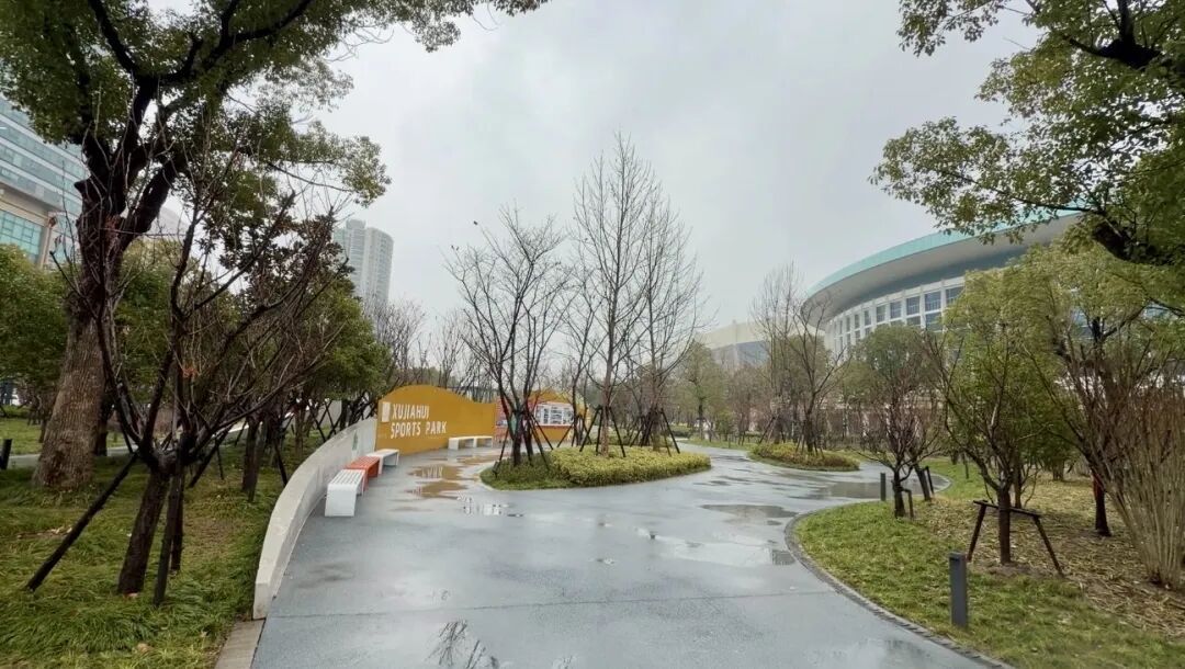 今日申城云幕低垂、细雨霏霏,湿冷的水汽裹着寒意漫遍街巷,户外出行体感也更加阴冷。上午10时,雨丝飘洒在徐家汇体育公园的上空,薄雾将整座公园笼罩,远处的上海体育场与上海体育馆在氤氲水汽中晕开,双圈跑道的塑胶路面泛着湿润的光泽。“雨天的公园很安静,空气也很清新,只要做好防雨措施,散步还是舒服的。”市民张女士表示,自己几乎每天都会来公园,不同天气下的景致各有韵味。