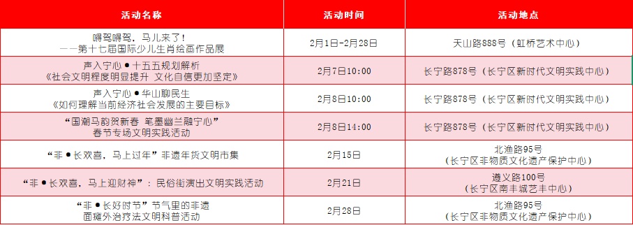 马年将至,长宁区新时代文明实践活动中心与各街镇分中心携手,为广大市民带来一系列暖心、热闹的新春活动。