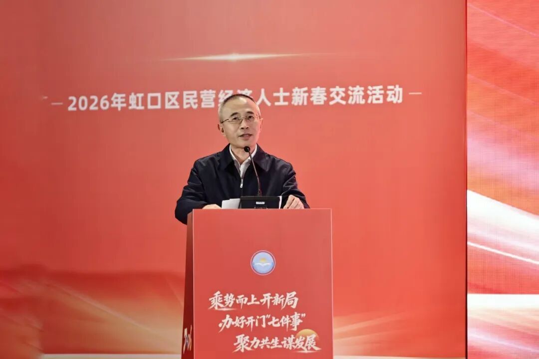 寿子琪在致辞中指出,虹口区委区政府高度重视民营经济发展,持续实施优化营商环境行动,为民营企业大显身手提供了更加广阔的发展空间。新的一年,要更好凝聚合力促进民营经济发展壮大。要抢抓机遇谋发展,不断提升核心竞争力。广大民营企业要主动投身发展大局,更好把握区位优势,选好赛道精耕细作,与区域产业生态共生共荣、协同发展。要扎实高效优服务,加强工作谋划和落实。进一步强化金融赋能,深化科创引领,放大航运优势,为民营企业跨境出海提供支撑。充分发挥“虹口区企业诉求平台”机制作用,优化涉企服务,加强闭环管理。要用心用情筑家园,形成良好发展生态。通过不断完善工作机制和平台,提升在培育龙头企业、培养年轻一代、夯实组织基础等方面的工作质效,共同促进民营企业高质量发展和民营企业家高素质成长。