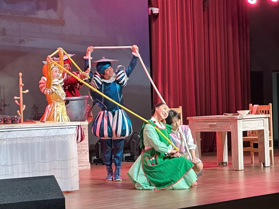 演出过程中,还穿插着与台下观众的互动环节,一根根“面条”在同学们的帮助下顺利‘出锅’,也促成母女和解相拥。来自长青学校的黄籽麟就对这个环节印象深刻:“虽然我不是‘拉到面’的那一个,但跟着大家一起伸手努力,看到最后那么温暖,感觉特别开心!”