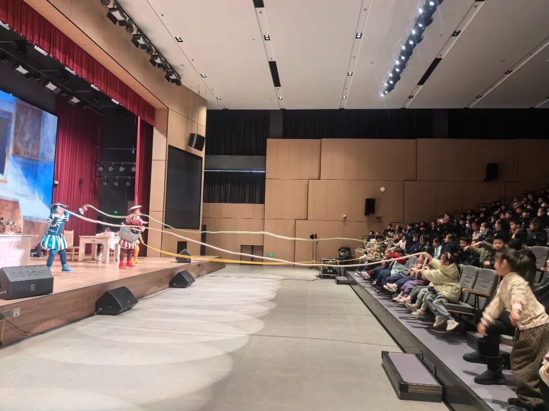 1月28日,新春的脚步愈发临近,北外滩街道新时代文明实践分中心星空剧场内座无虚席。来自虹口区第四中心小学和长青学校的近300名同学欢聚一堂,共同沉浸在中国福利会儿童艺术剧院原创音乐光影剧《妈妈的味道》的温情世界里。