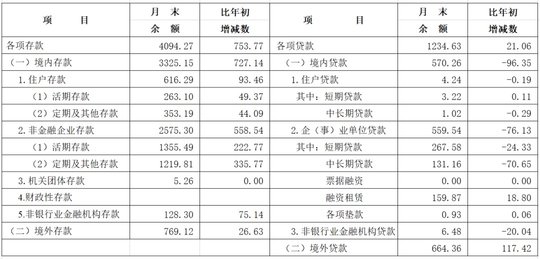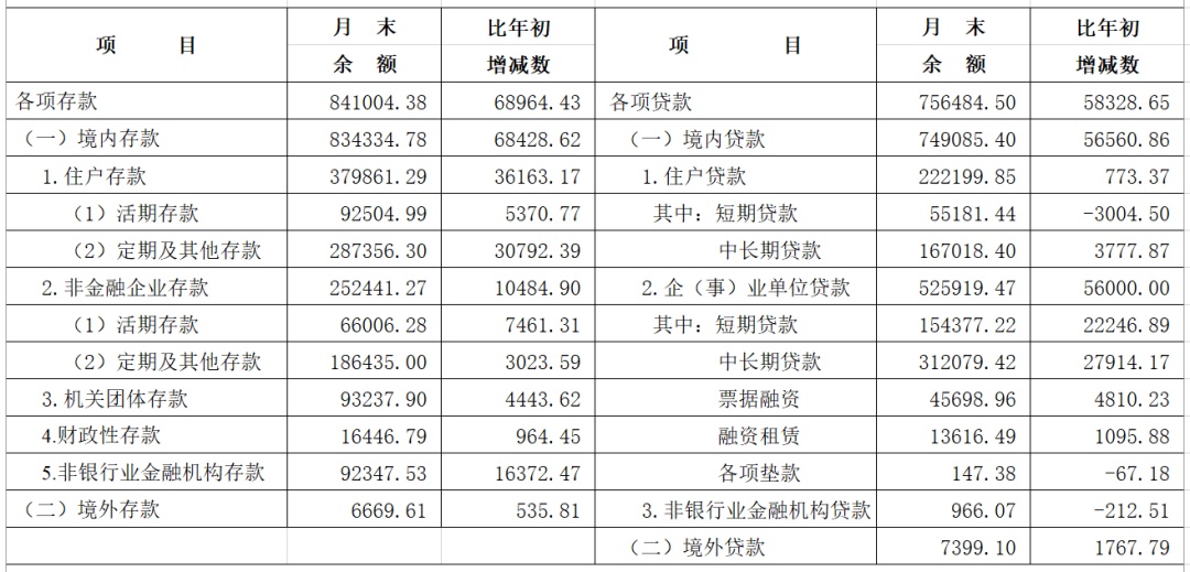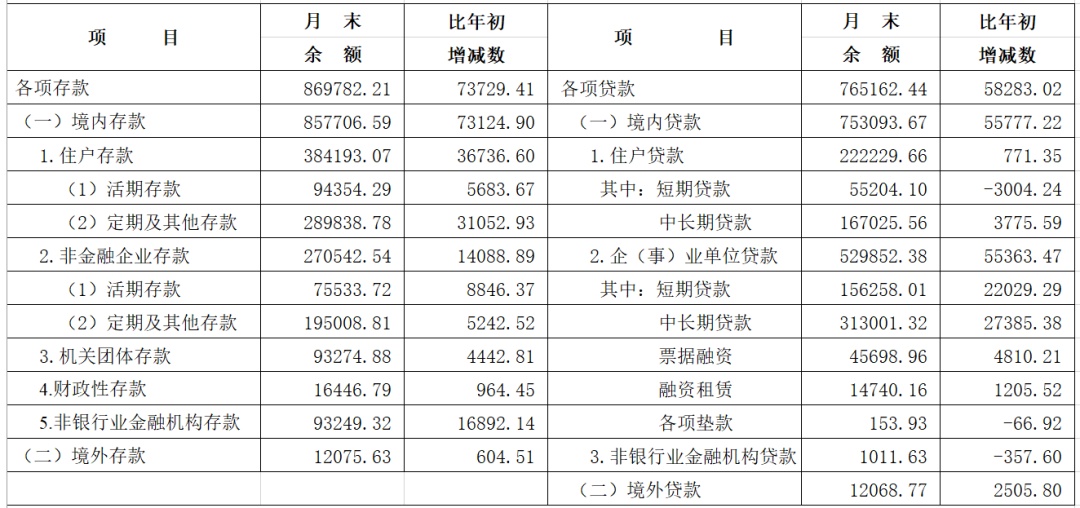 一、人民币贷款增加5.83万亿元,外币贷款增加21亿美元