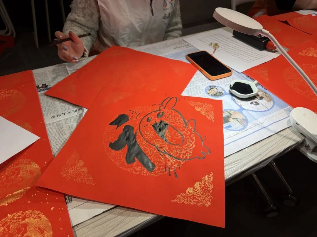 个性化的创作需求在这里也得到了充分满足。租客李先生家中“猫狗双全”,特意请老师创作了一副“狗尾摇春喜送福,猫爪印雪雪生银”的趣味对联,将爱宠融入新春祝福,引得邻里会心一笑。自己动手书写或定制专属春联的过程,让这份传统年礼成为一份承载个人情感、生活趣味与新年期盼的温暖纪念。活动持续至晚间,约有150名公寓住户领取了手写春联与福字,许多人在交流创意与书写技巧中,也增进了邻里间的熟络与情谊。