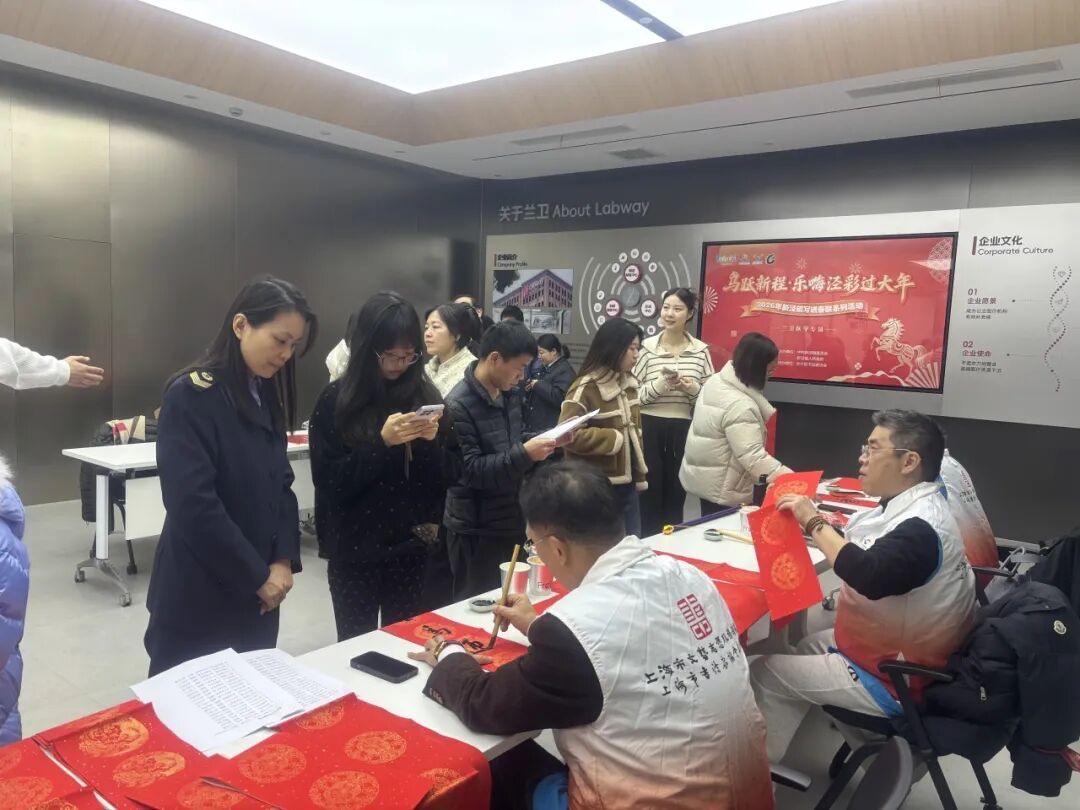 同样的热烈场景也出现在兰卫医学。一位年轻员工拿着手机上的潮玩图案,请书法老师在“福”字上添一笔萌趣。书写过程中,传统“福”字与“星星人”等卡通元素巧妙结合,引得周围同事连连称赞。活动持续一个多小时,共计为150余名员工书写并赠送了春联与福字,让午间休息时段充满了文化暖意与节日欢笑。