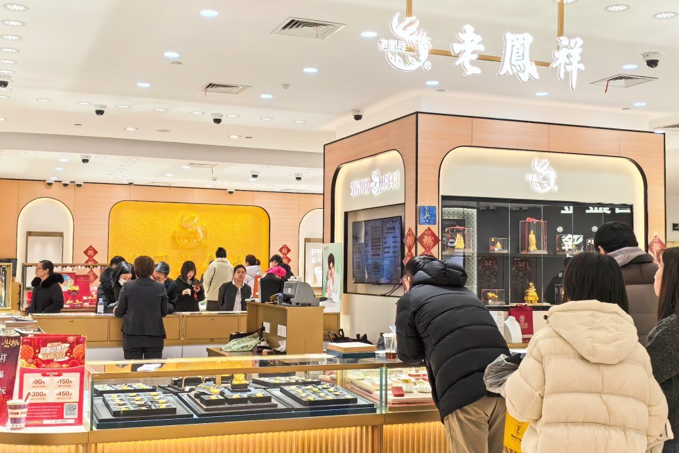 12点半刚过,老凤祥柜台使用消费券成交已近10单,消费者有的专程坐了两站地铁赶来,有的先来“打样”,计划下班后再来购买。