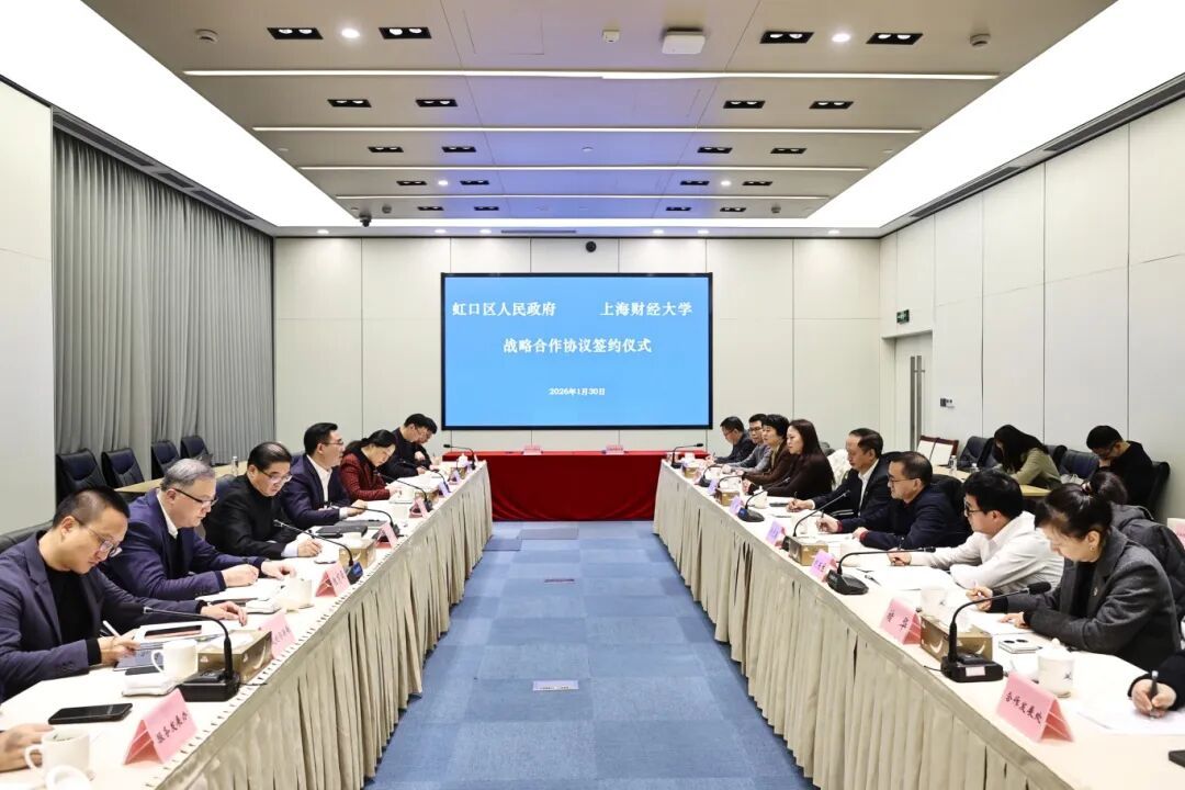 1月30日下午,虹口区人民政府与上海财经大学战略合作协议签约仪式举行,进一步深化合作、优势互补、增强合力,携手服务上海国际金融中心建设和国家金融事业发展。区委书记李谦、上海财经大学党委书记许涛出席会议并讲话。