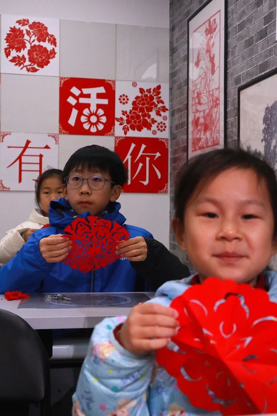 孩子们也剪出了属于自己的新春作品