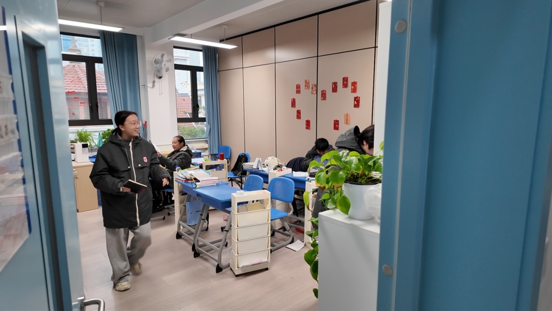 有的学生自发布置绿植角,专人负责浇水养护;有的贴满师生新年“全家福”拍立得和手工作品;甚至有同学将躺椅搬进学室,课间或午休时在这里放松闲聊,让学室真正成为学生在校的“第二家园”。这种空间与组织形态的双重重构,让精准关怀和深度联结成为可能。
