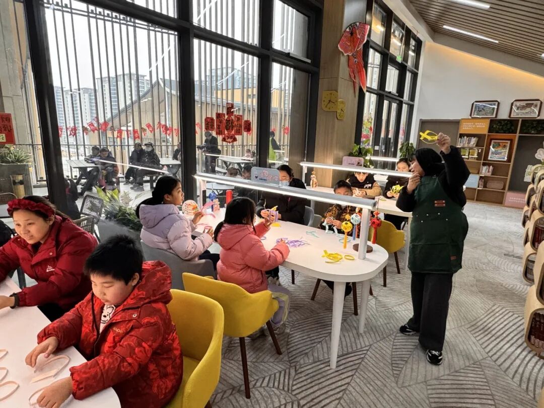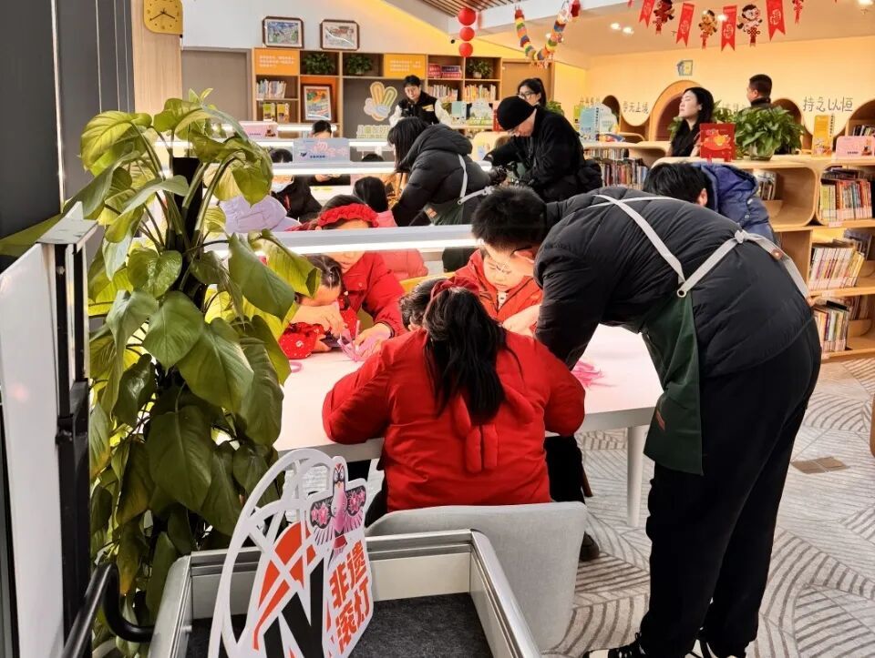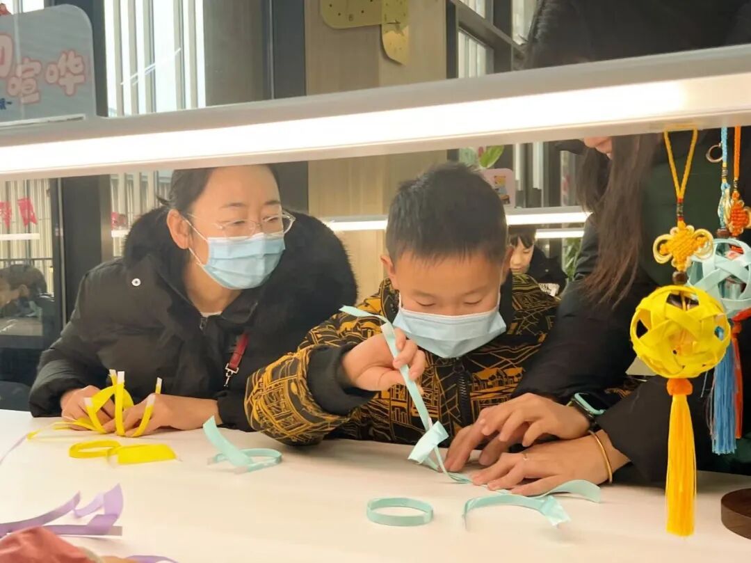而在图书馆的另一侧,滚灯香囊手工区同样热闹,小朋友与家长齐动手,制作独具滚灯造型的新春香囊,寄托着对新春团圆、福气盈门的美好祝愿。