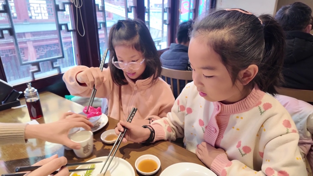 在九曲桥畔的南翔馒头店,除了经典的小笼包,食客们又多了一个新选择——“萌马云朵糕”这款生肖甜品。只见成双成对的萌马,一红一白两匹可爱的小马驹卧在星星云朵之上,它们睁着黑黝黝的眼睛,仿佛满心期待着新年的到来,模样十分惹人喜爱。这小萌马不仅深受孩子们的喜爱,软糯的口感更是让大人们也赞不绝口。