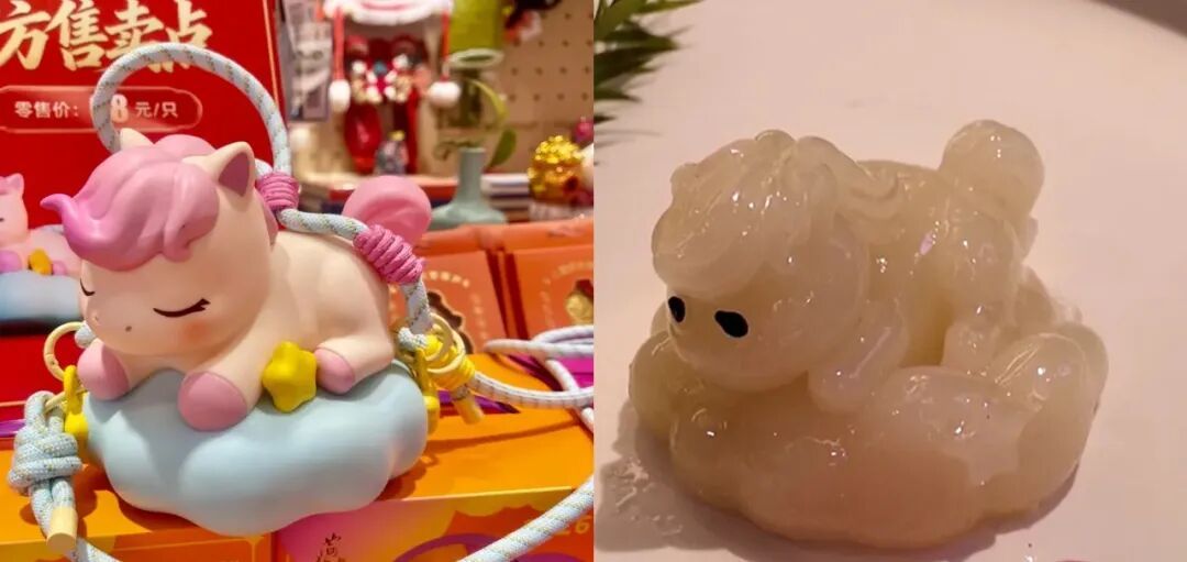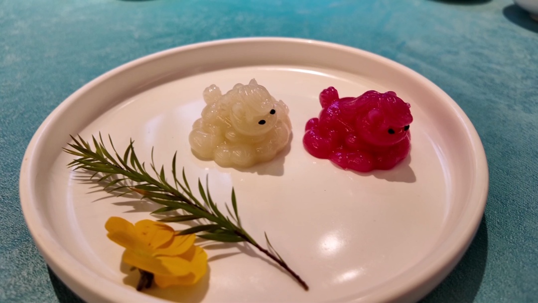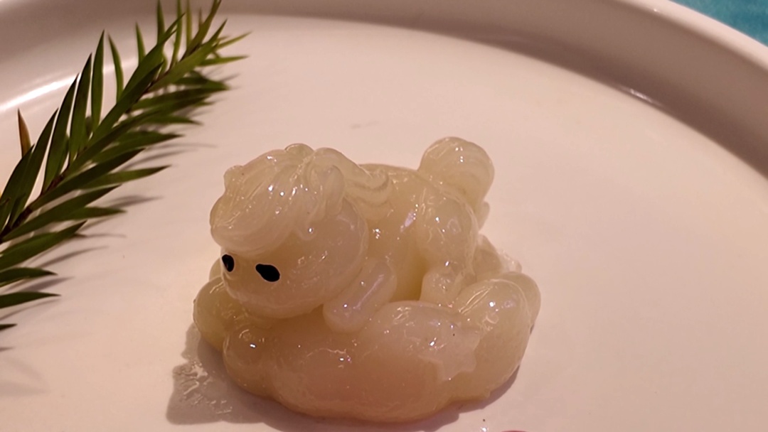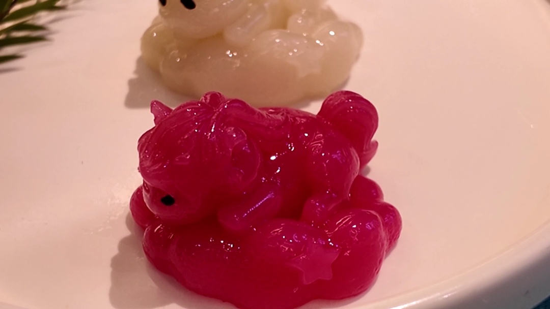 南翔馒头店联席总经理游玉敏详细介绍了制作过程:“这款云朵糕的主要材料是糯米粉搭配一些澄面,口感类似拉糕。每只萌马从制作到完成大概需要4个多小时,做好后要经过冷却脱模,之后还要进行装饰。比如给萌马加上两颗小黑芝麻当作眼睛,要是客人有需求,我们还会给它刷上一层金粉,让它看起来更加精致好看。而且这两匹马是不同口味的,一匹是原味,就是糯米粉加澄面蒸出来后熟糯米粉的颜色;另一匹我们添加了火龙果蔬菜粉,就成了红马,与白马相互映衬。”