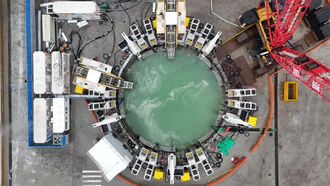 为其量身打造的“启明号”竖井掘进机开挖直径达24米,最大开挖深度75米,可承受8bar水压。该装备集成主驱动、支腿撑紧、截割双臂等系统,具备自主下沉、导向、环控与感知控制能力,搭载多项创新技术,实现“有人值守、无人操作”的智能掘进与衬砌同步拼装。