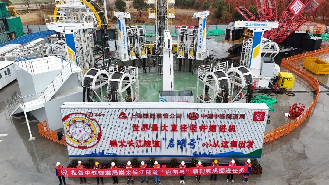 1月30日,我国自主研制的世界最大直径竖井掘进机——崇太长江隧道“启明号”顺利完成掘进任务,实现了当月始发、当月完成掘进任务(56.08米)的目标,创造了高铁竖井掘进机直径最大、速度最快的新纪录。