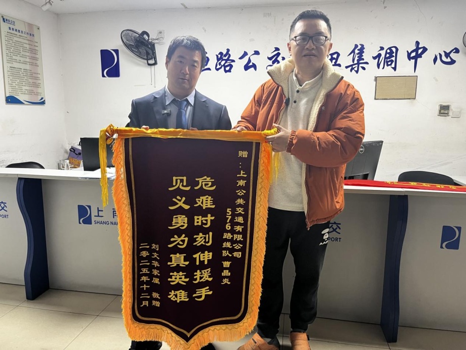 2025年12月24日,康复中的刘阿姨(那位突发脑梗的乘客)的儿子赵先生,带着锦旗来到芦恒路调度室。他握着曹晶炎的手,声音哽咽:“医生说了,脑梗抢救的黄金时间就几个小时,晚一点都可能......曹师傅,您是我们全家的恩人!”