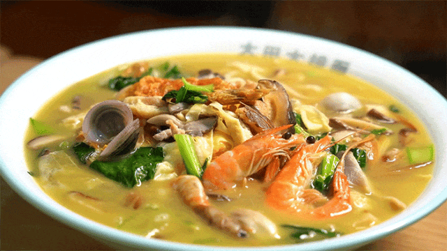 汤底以老姜+猪筒骨慢熬数小时,微辣暖胃。鲜活的大虾蛤蜊、温岭虾干等等各种丰富的食材强强联手,组合出的丰富口感才是整碗面的灵魂!