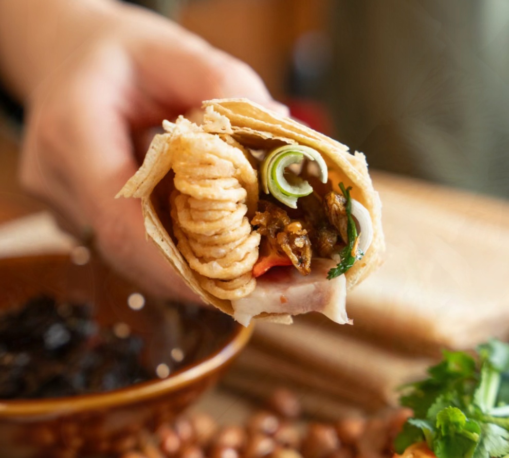 凭喜好摊开杂粮煎饼裹进豪华馅料,一口下去,直接颠覆对“煎饼果子”的错误认知。