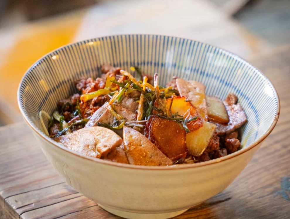 桂山禾桂林米粉店由广西夫妻经营,卤水配方从老家带来,已在上海打磨了30年。招牌卤菜粉标配锅烧浇头,酥脆香肥堪称一绝!锅烧外酥里嫩,咬下去滋滋冒油,是整碗粉的灵魂。