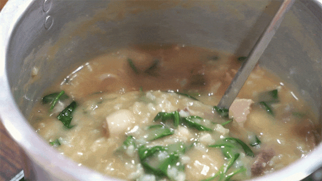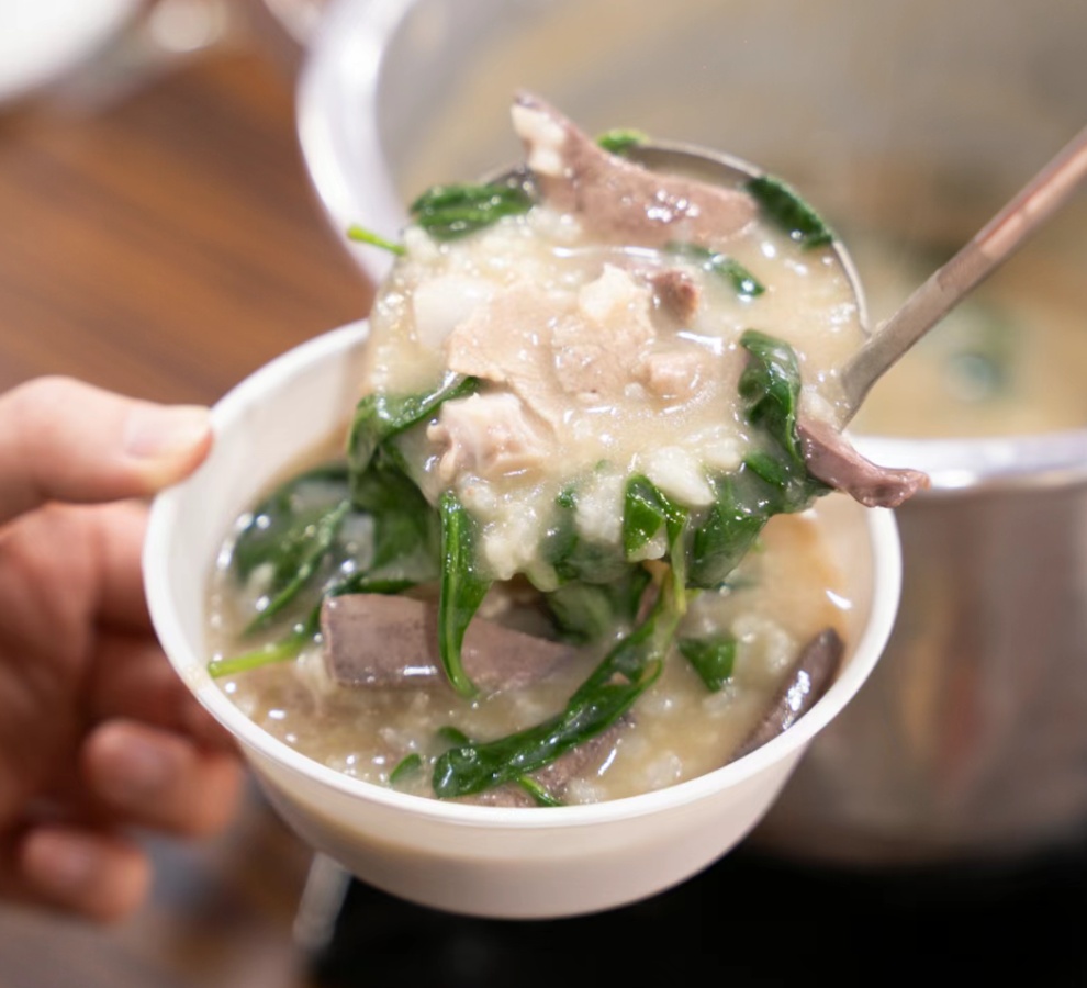 想吃什么全都自己挑,拿不定主意就让老板根据预算自由组合,现点下粥生滚,猪杂的鲜美和慢炖出的沙茶味粥底融合交织,端上桌一定要趁热吃!