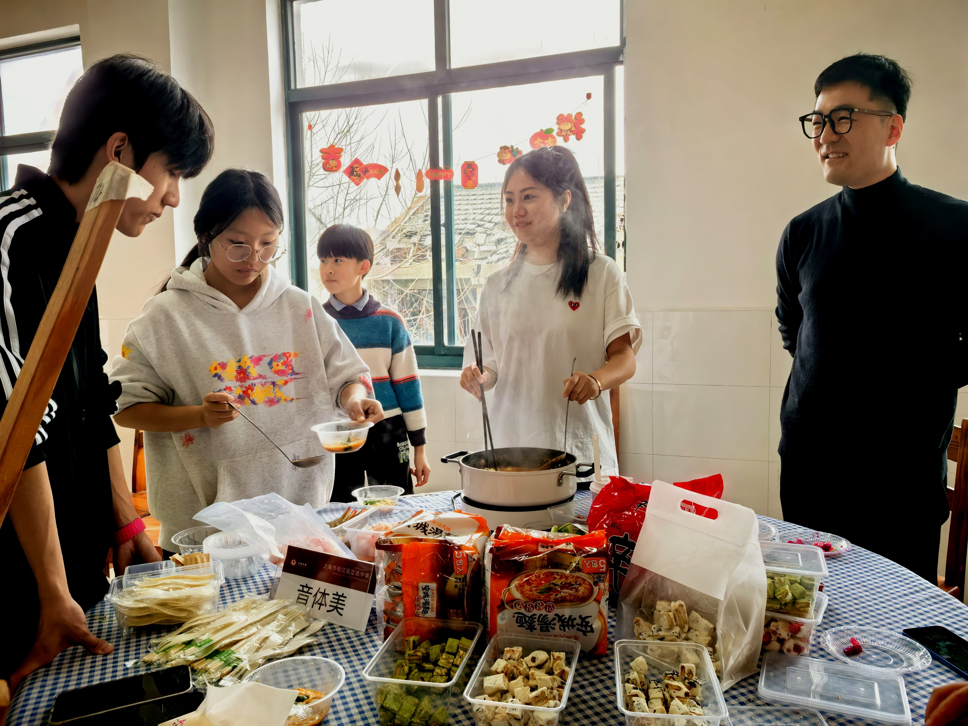 音乐、美术、体育教研组的教师们组团煮起了火锅,路过的学生就算不吃,也要凑近道一句“红红火火”。热气与香味氤氲中,浓浓年味扑面而来。音乐教师杨海洋表示:“我们的美食嘉年华,不只是停留在‘吃’的层面,更在潜移默化中落实‘五育并举’,拉近了学生和老师之间的距离。”