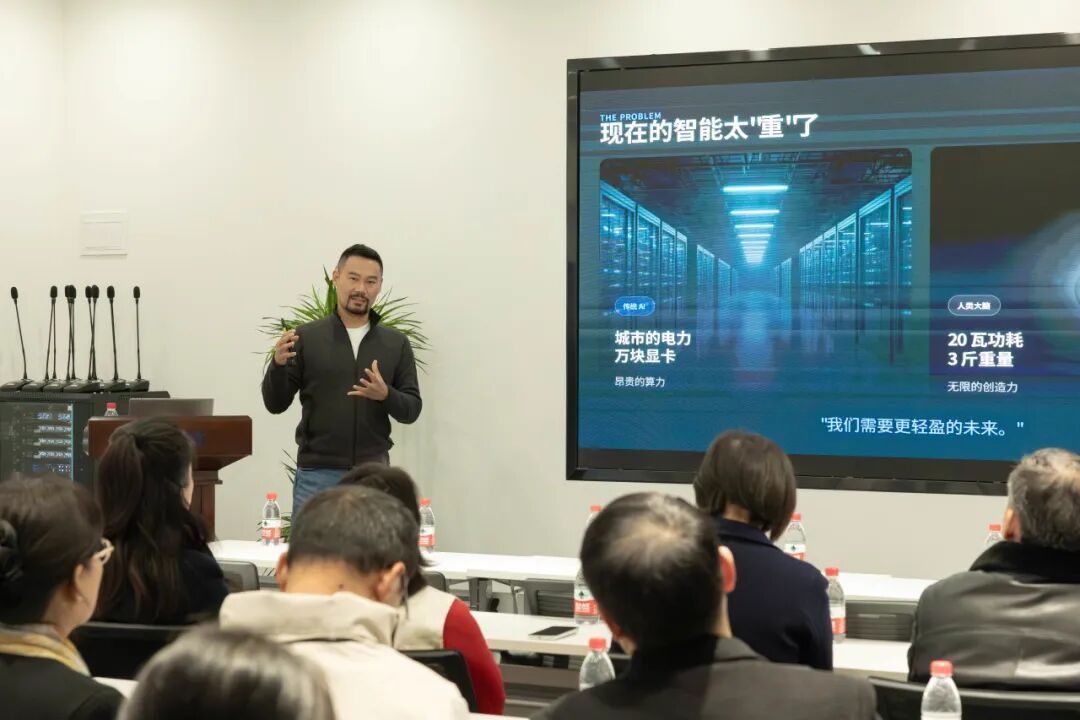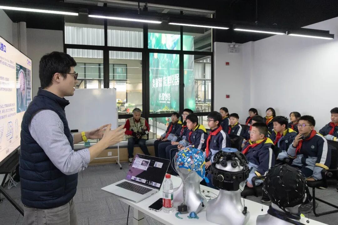 十余名来自上海市铁岭中学机器人社团的学生来到潜脑科技,联合创始人赵黎明带来了一堂生动的脑电科学课;学校管理者们则来到羲悉智能,聆听AI智能体的无限可能。这两家由长阳创谷“智脑工场”孵化器孵化的企业,将前沿的类脑知识以生动的语言和贴近生活的方式带到了学生和教育工作者身边。