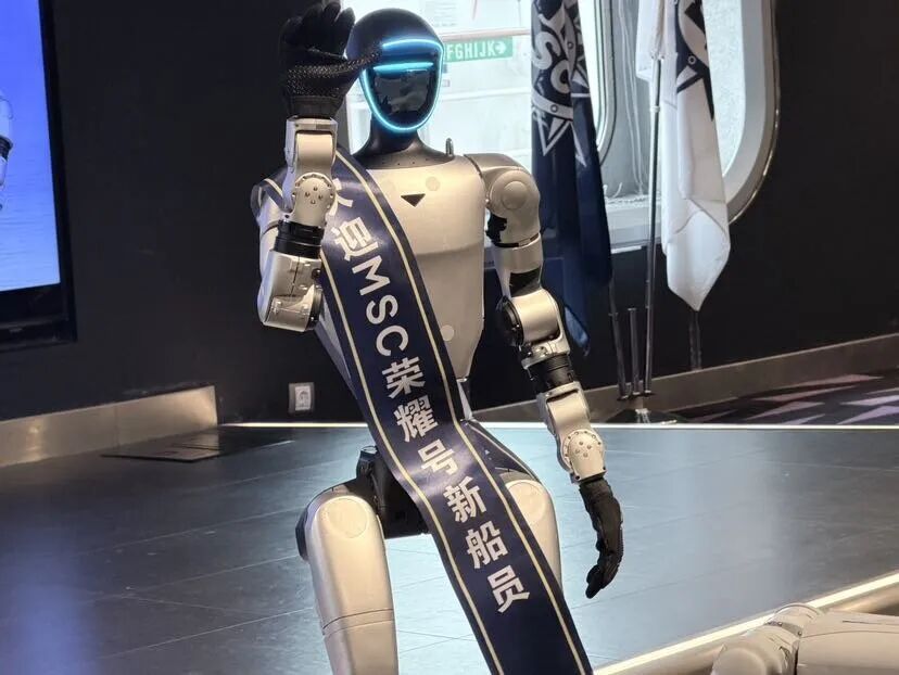 来自宝山企业宇树科技的智能机器人,正式以“船员”身份加入MSC“荣耀”号服务团队。这不是一次简单的科技展示,而是基于实际服务需求开展的定制化开发与落地应用。这批机器人“船员”将在邮轮上承担欢迎导引、信息咨询、互动娱乐等服务,为乘客带来更智能、更便捷的旅行体验,同时助力船员提升服务效率。