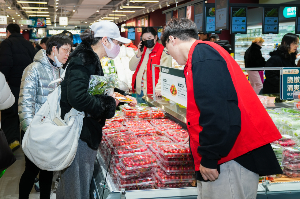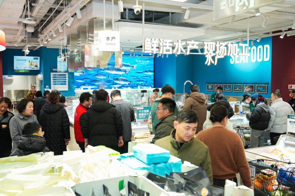 浦东商超再添新成员。1月30日,浦东新区首家京东七鲜超市于世纪汇广场LG2层开业,在跨年迎新消费旺季为消费者提供备年货的新选择。
