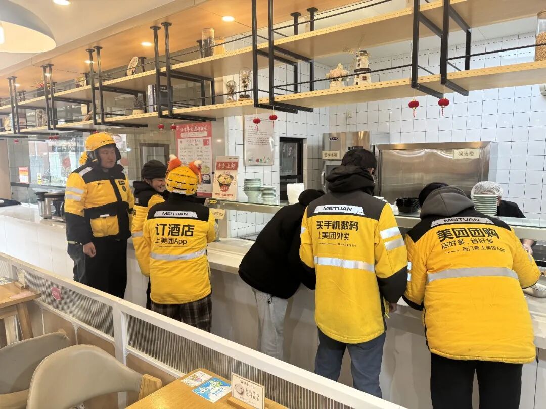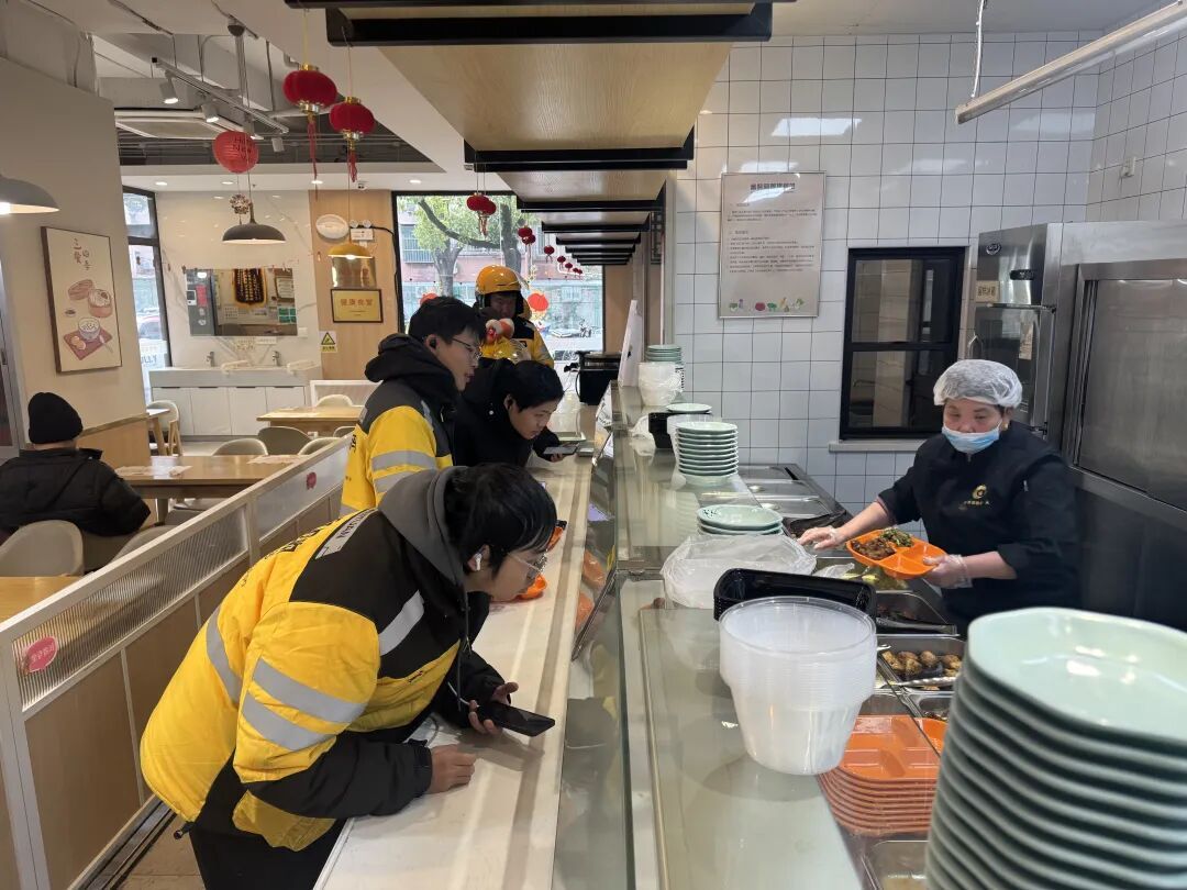 对刘铁军而言,这里的意义远不止一个吃饭的据点。“食堂的老板和阿姨们都特别好,从不嫌我们麻烦。饭不够随便添,汤凉了还能续热的。我们跑累了,进来接满一壶热水,坐下歇歇脚,吹吹暖风,真的感觉像回家了一样。”刘铁军告诉记者,在节奏飞快、风雨无阻的奔波途中,这样一个能提供身体暖意与心理慰藉的“驿站”,显得尤为珍贵。