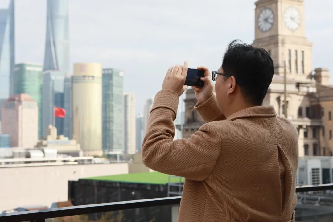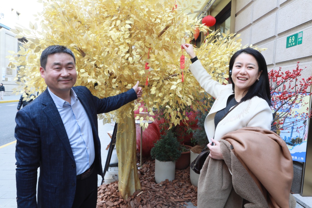 外滩FTC是黄浦区推进“金融城+科技城”双城融合的重要载体,这里不仅是金融科技企业的聚集地,更是互联网优质内容创作的热土。企业代表们跟随讲解员参观了开放式共享办公空间、专业直播间、露台展区、咖啡会客厅等功能区域,深入了解外滩FTC的发展历程与运营机制。在露台上,大家纷纷掏出手机,与外滩万国建筑博览群合影留念,还有多位企业代表在外滩FTC门口的“黄金树”上挂上了自己的新年心愿。现场,更有多家企业询问起了外滩FTC的入驻要求,希望能有机会真正来到黄浦投资兴业。