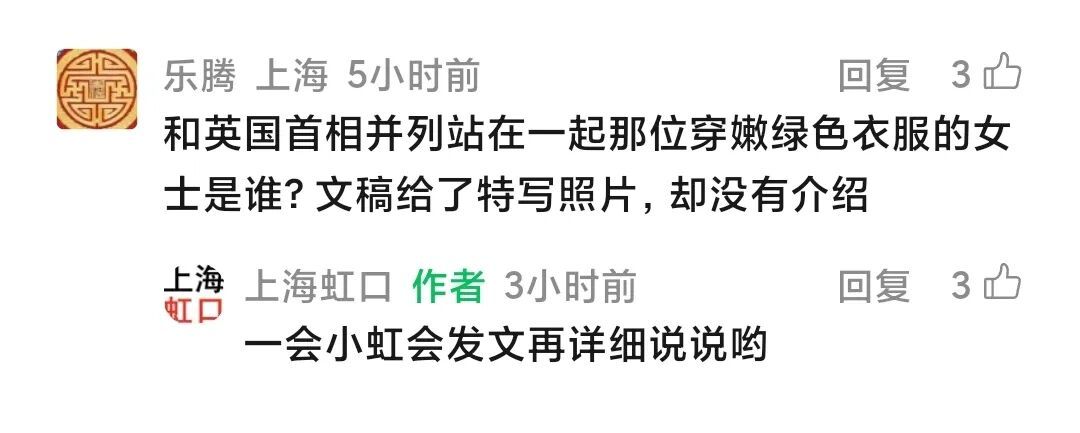 昨日,英国首相斯塔默一行到访虹口,在位于北外滩的百年地标雷士德工学院与上海学生进行了亲切交流。有粉丝在评论区留言: