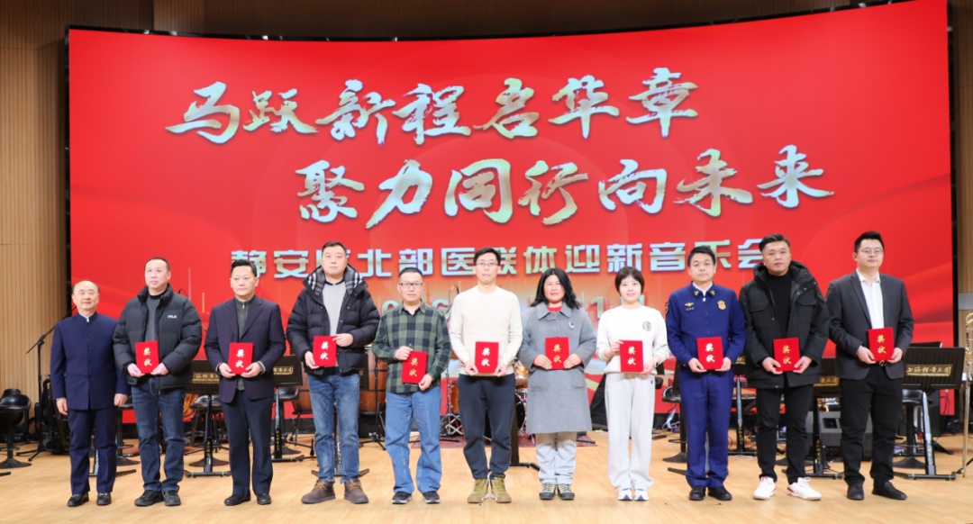 本次“马跃新程启华章 聚力同行向未来”静安区北部医联体迎新音乐会由市北医院主办。当天,区卫生健康委、彭浦新村街道、上海轻音乐团、上海马戏城、上海雷允上西区药业有限公司、上海市新中高级中学、市北医院等相关负责人出席活动。