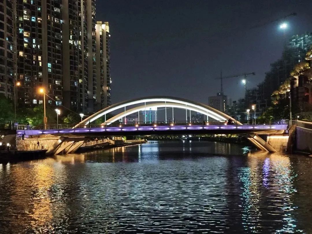 踏着宝成桥桥洞流动的光影出发,仿佛穿越时间的隧道。这座承载着历史记忆的拱桥是夜跑的第一处标志节点。