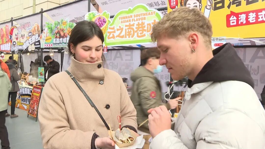 “里面有蔬菜和肉,做法简单但特别好吃!”一位外籍友人一边品尝,一边连连点赞。和家人出来逛街的8岁小朋友黄萱举着美食说:“我买了鸡柳和薯条,等会儿去买冰糖葫芦,这里太热闹了,有好多小吃。”