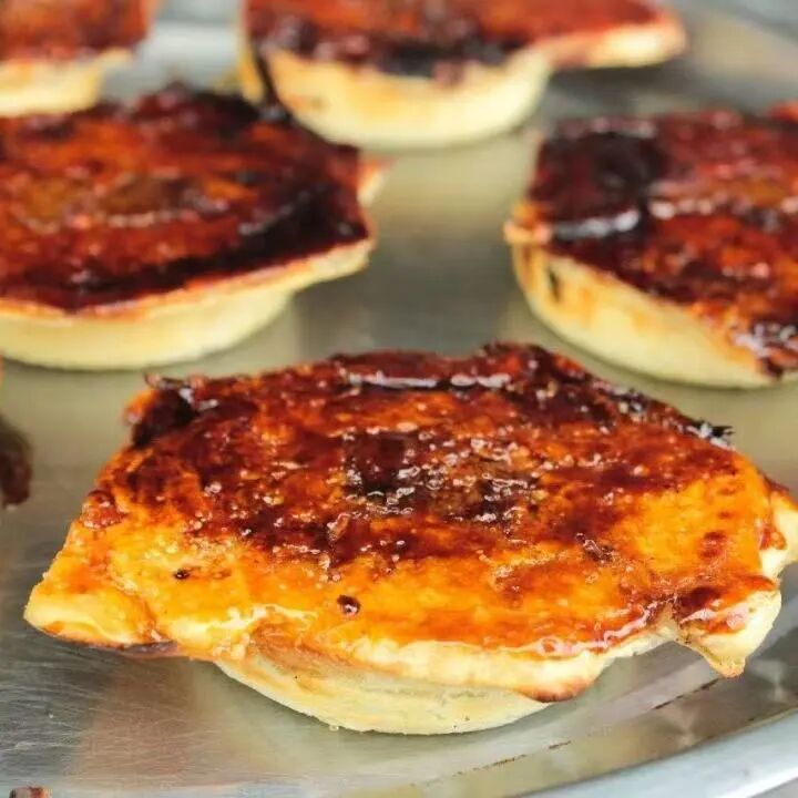 ✅ 海棠糕:加入绵密豆沙和猪油,烘烤后表面形成一层焦脆糖壳,内里绵软香甜,豆沙的清甜混着焦糖的香气,一口下去超满足。