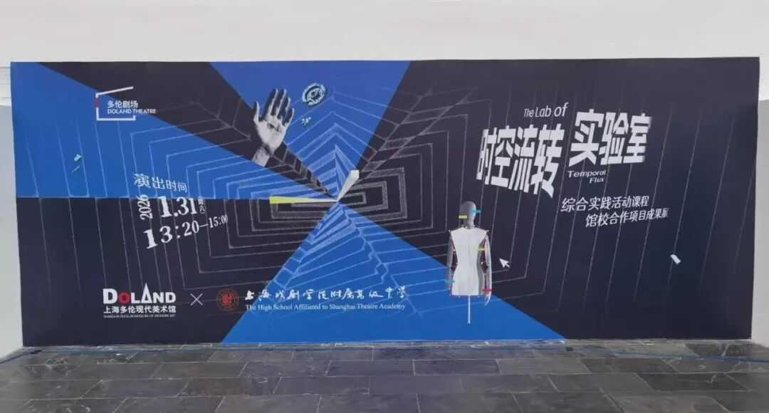 “时空流转实验室”是上海多伦现代美术馆与上海戏剧学院附属高级中学于2025年11月正式启动的馆校合作综合实践项目。项目以上海多伦现代美术馆展览 “重新发现时间一一第二届中国当代影像艺术年鉴展”为创作起点,通过当代剧场的形式对展览议题进行延展;也作为上海戏剧学院附属高级中学综合实践课程“关于艺术展览的当代剧场‘再创作’实践研究”的核心案例,将美术馆公共空间转化为动态的学习与演绎场域,引导学生从当代影像艺术与“时间”这核心主题出发,通过当代剧场的方式,对展览议题进行再思考、再表达。