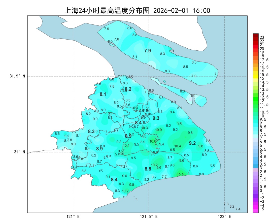受辐射降温影响,今早依然寒冷,各区最低气温在-3℃~2℃之间。白天阳光时隐时现,气温小幅回升,徐家汇站最高气温定格在8.4℃,比昨天高2℃。