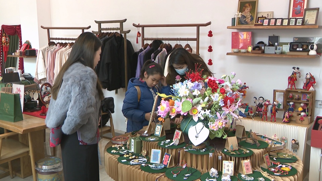 店堂内,上百种来自全国各地的非遗商品琳琅满目,摆满了各个角落,不时有市民游客前来观赏和采购。“马年马上到了,这里的马年小挂件做得很精美。”“这里的小饰品比较有过年的味道。”游客纷纷表示。