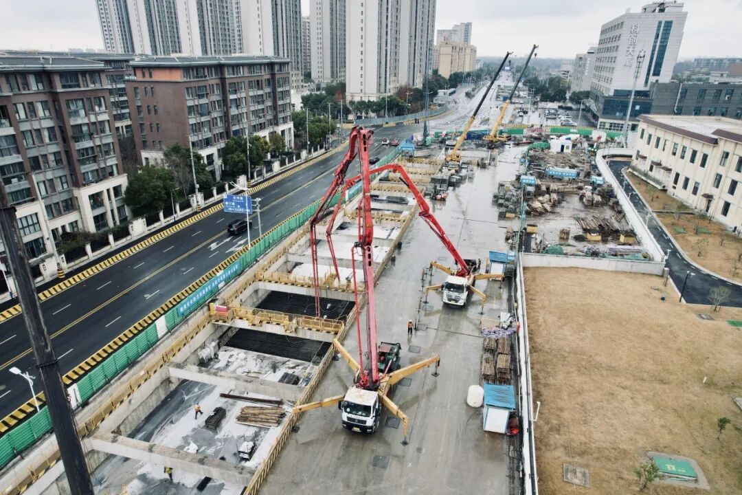 近期,上海轨道交通市域线嘉闵线3标取得重大建设进展。随着最后一块顶板浇筑完成,新成路站主体结构顺利封顶,为后续工程施工奠定坚实基础。 3标新成路站位于胜竹路与武乡南路交叉路口西侧,沿胜竹路东西向布置,为地下二层岛式站台车站,车站总长为253.2米。新成路站在建设过程中,存在周边环境复杂、作业空间有限、施工工序调整等众多难点。 针对这些挑战,项目团队开展防渗漏施工专题研讨,优化混凝土配比并添加抗裂剂。基于“硬化混凝土开裂风险预测模型”,优化施工段划分。运用振弦式应变计监测混凝土应力与温度,科学把控侧墙拆模时间与混凝土养护措施,稳步推进“无渗漏车站”建设。
