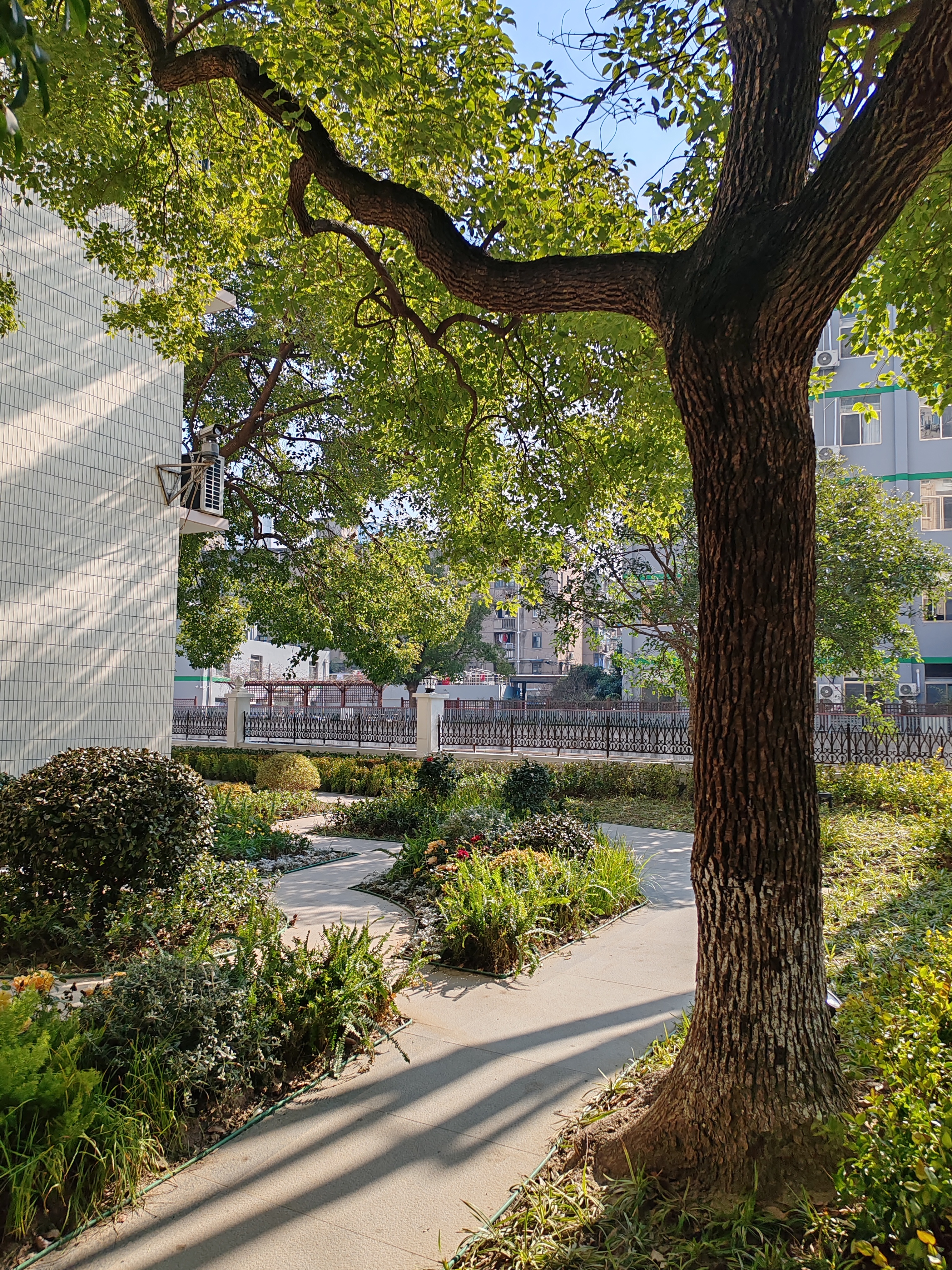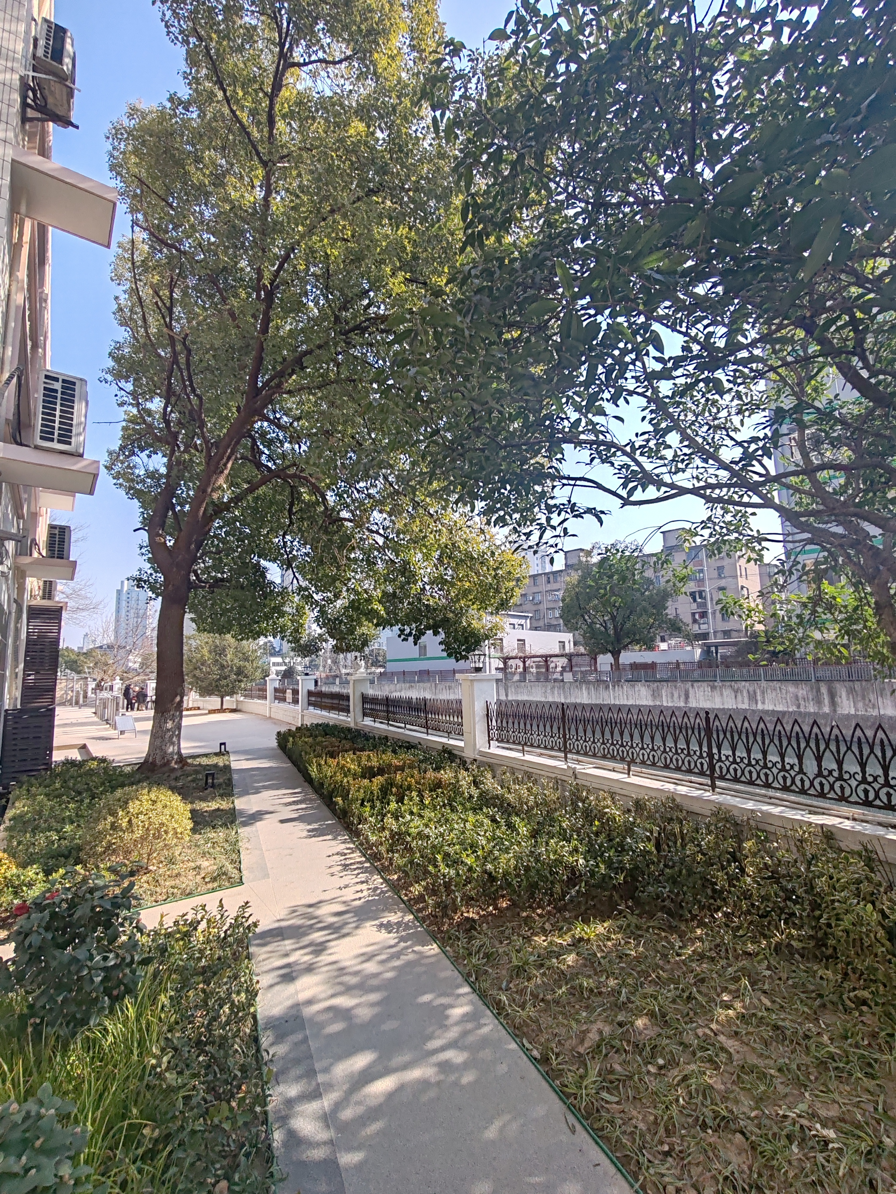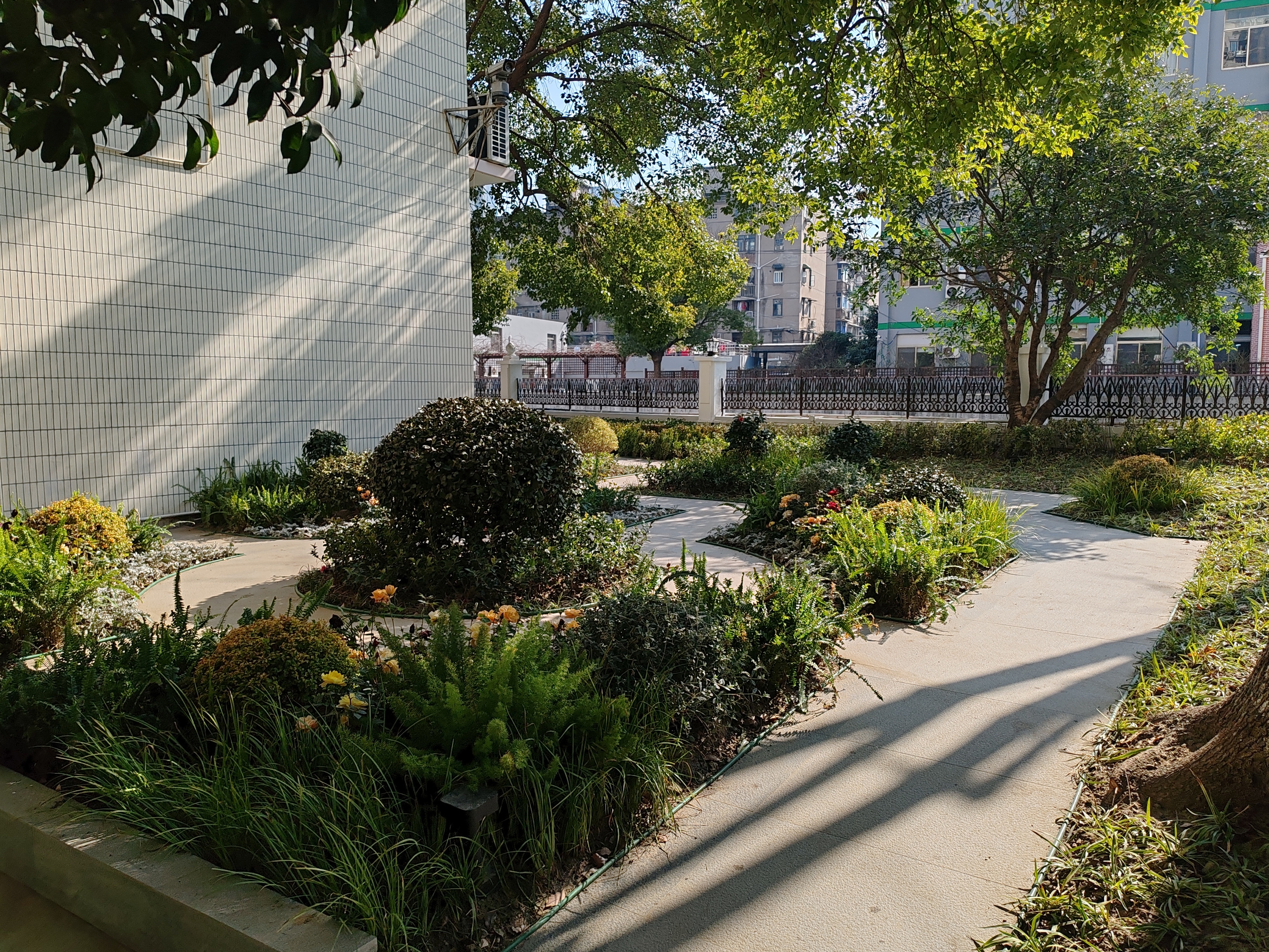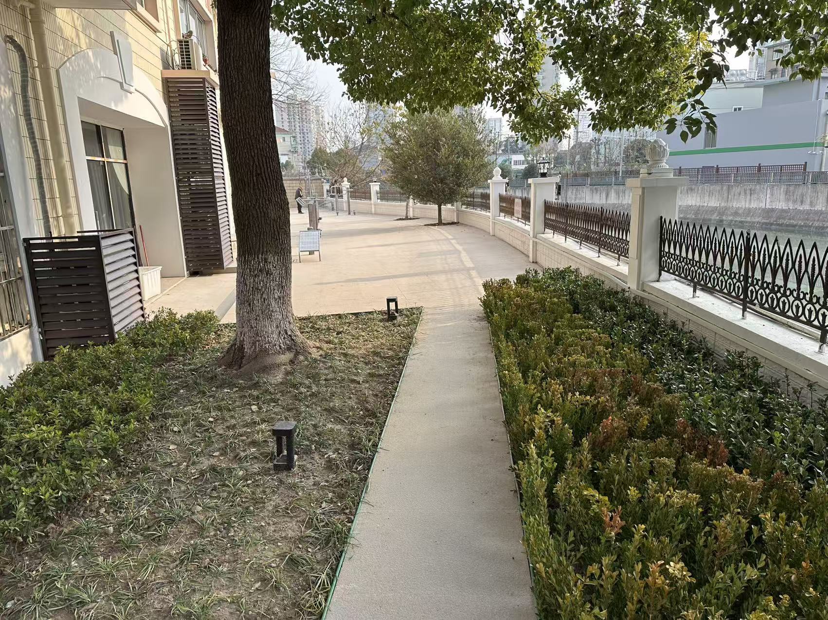 如今的“和泰花间”,处处可见用心设计:广场地面重新铺设平整地砖,暗藏排水沟彻底解决积水问题;绿地重新规划布局,新增景观步道串联起各处景致;沿河建筑外立面焕然一新,凌乱线路被整理收纳,空调外机加装了统一百叶栏;东侧儿童活动场地墙面刷新,滑梯、摇摇椅等器材完成检修保养,成为孩子们的欢乐天地。
