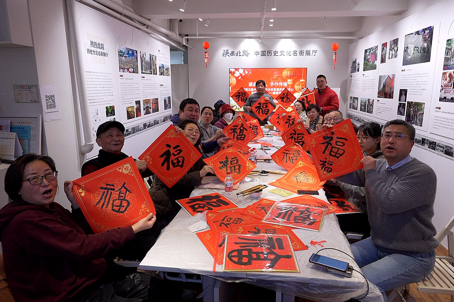 1月31日,陕西北路中国历史文化名街展示咨询中心“骏启新程,手作传福”春节系列活动(第三场)——“墨香传福”在氤氲墨香中进行。