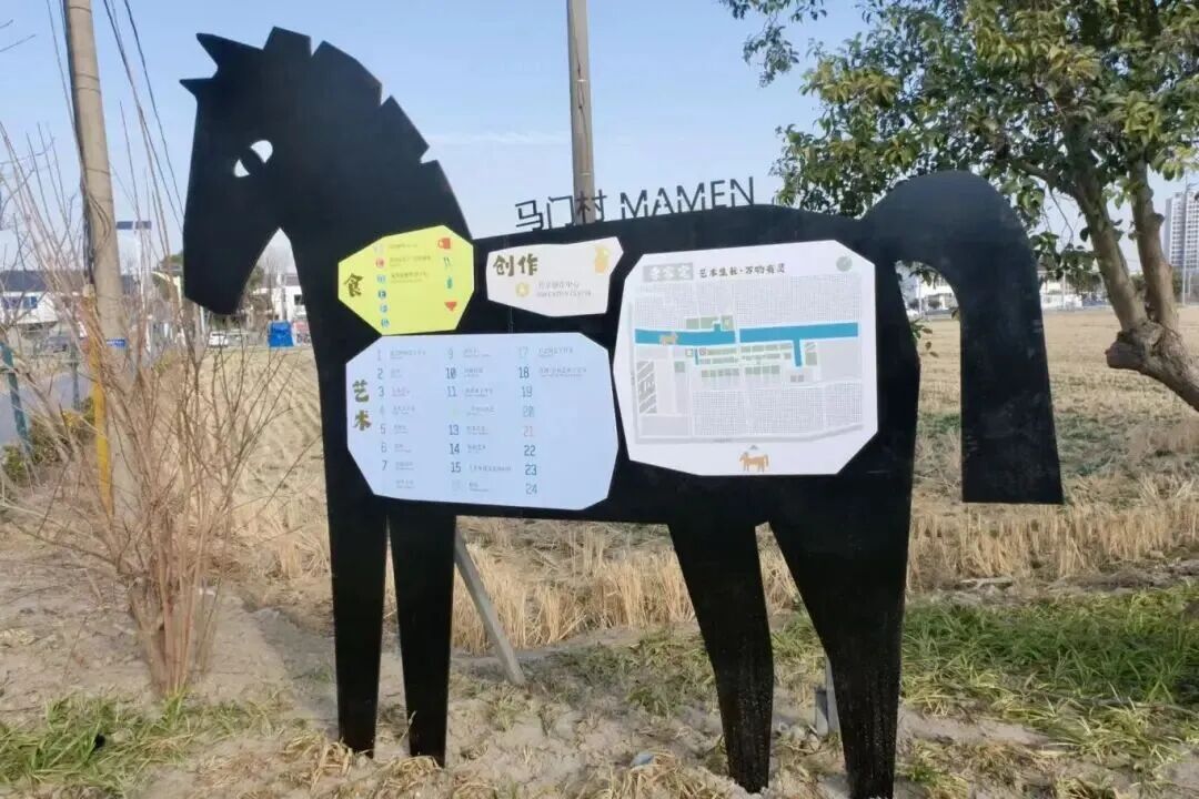 然而,马门村的“马元素”远不只体现在陶艺活动中。从村口的马雕塑、公告牌,到遍布村内的卡通马墙绘、陶马装饰,再到稻田旁的马形草垛……漫步村中,一系列以“马”为灵感的元素已悄然融入乡村景观。